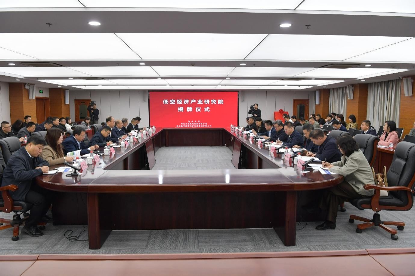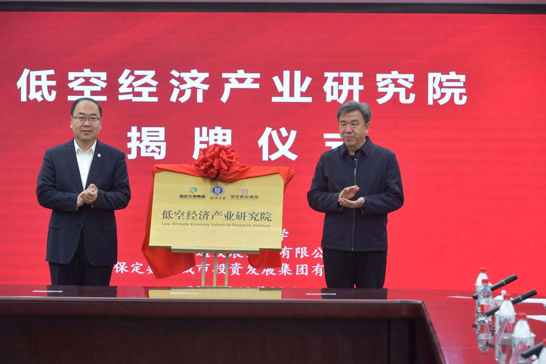 10月23日上午,河北大学与保定交通发展集团有限公司、保定数字城市投资发展集团有限公司共建“低空经济产业研究院”揭牌仪式在河北大学举行。河北大学党委副书记、校长孟庆瑜,保定市委常委、常务副市长张贵宝,市政府常务副秘书长孙军辉,出席揭牌仪式。河北大学党委常委、副校长张锋主持此次活动。